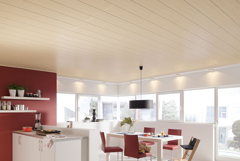 Dekorpaneele zur Deckenverkleidung sorgen für einen optisch perfekten Auftritt, halten bei entsprechender Dämmung die Wärme im Raum und tragen mit ihren klaren Linien zur Gestaltung bei.